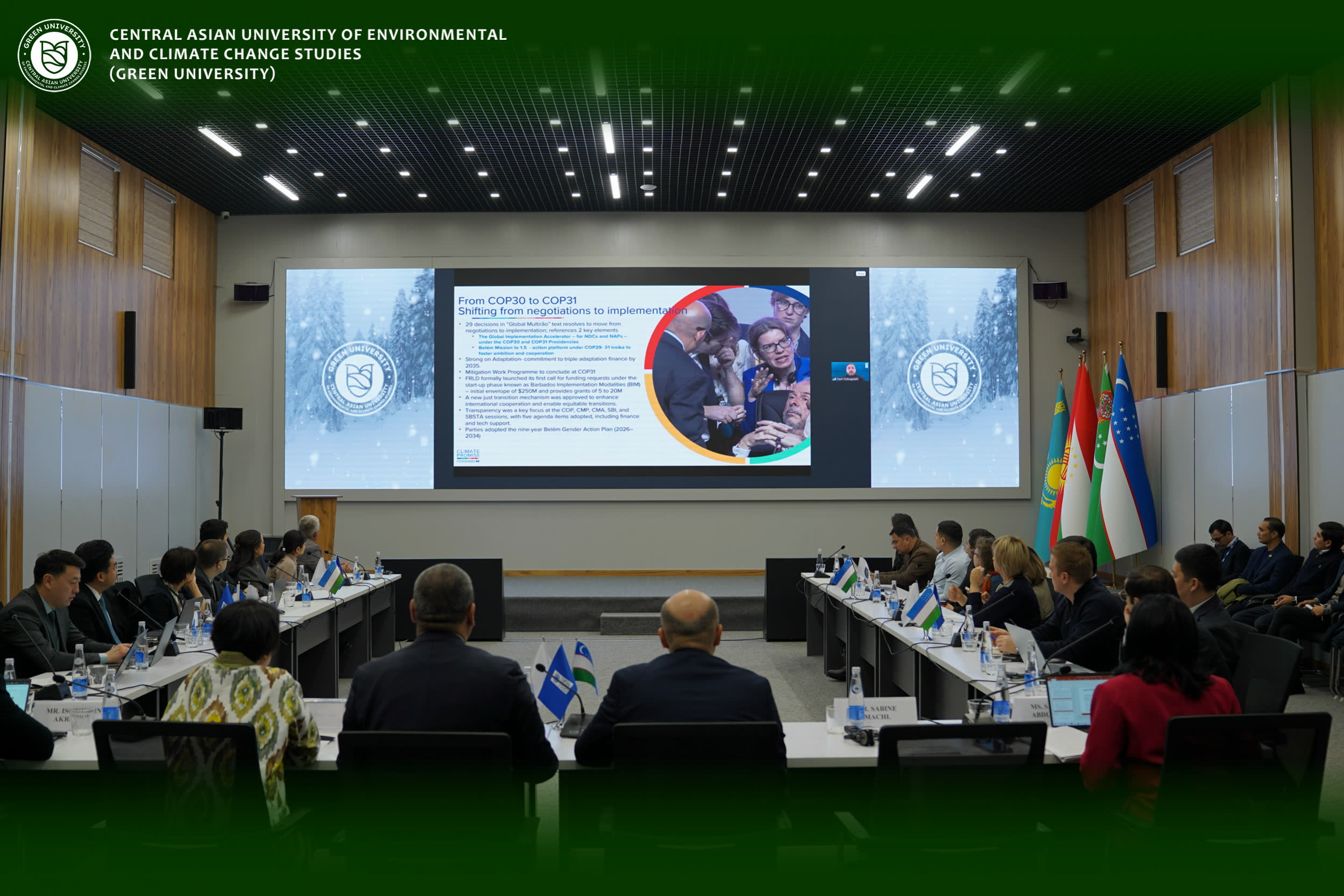2026 yil 29 yanvar — Bugun Green University Birinchi NDC muvofiqlashtirish yigʻilishi va Oʻzbekistonning NDC 3.0 ishga tushirish yoʻnalishlarini rivojlantirish bo‘yicha seminarga mezbonlik qildi. Tadbir Ekologiya va iqlim oʻzgarishi milliy qoʻmitasi tomonidan UNDP koʻmagi bilan “UNDP Climate Promise – Phase II” tashabbusi doirasida tashkil etildi.