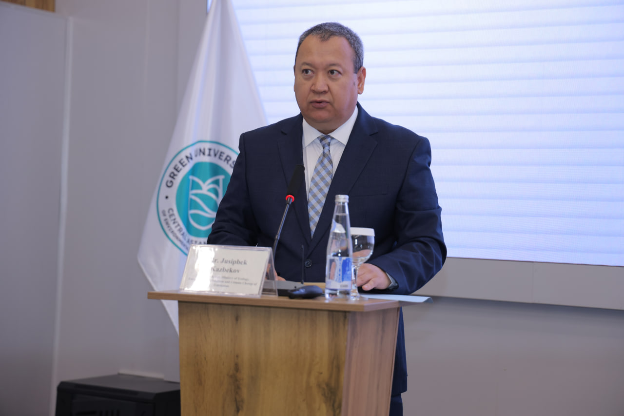 The conference was opened with welcoming remarks by Mr. Jusipbek Kazbekov, Deputy Minister of Ecology, Environmental Protection and Climate Change of the Republic of Uzbekistan; Dr. Shahriyor Akhtamovich Nurulloyev, Vice-Rector of Green University; and Ms. Corinne Karlaganis from Germany.